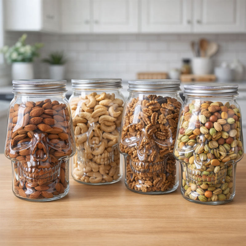 This gothic glass skull jar turns your kitchen, bar, or shelf into a conversation starter. From the front, it looks like an ordinary jar — until the skull shape emerges, staring back through the glass. It’s practical, a little eerie, and undeniably cool.
